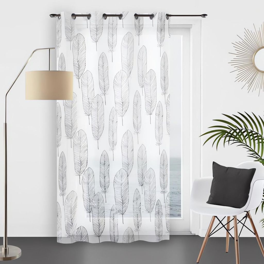 Voile au motif plumes actuel, la collection LALY est idéale pour donner une touche déco jeune et moderne à votre intérieur. Conseil d'entretien : - lavage à la main ou 30°, - utilisation javel interdite, - repassage temérature modérée, - pas de sèche linge, ni pressing. Dimension : 135x250 cm Finition : oeillets Composition: 100% polyester Tissu : motif dévoré