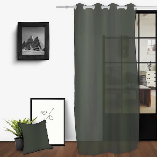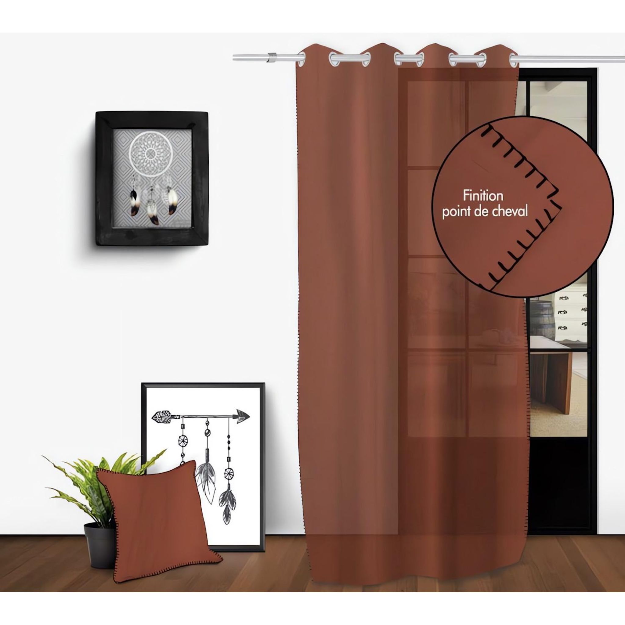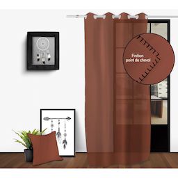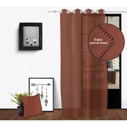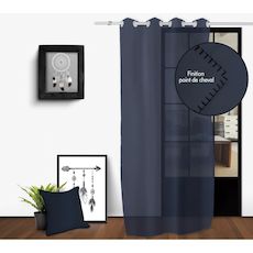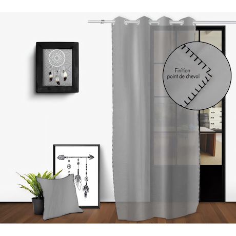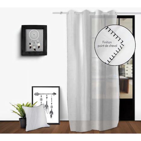 Voilage uni contrasté d'un surjet noir qui vient moderniser ce modèle. Finition: 8 oeillets en acier inox, anti-rouilles. Prêt à poser. Composition: 75 % coton, 25% lin. Dimensions: 135x250 cm. Entretien: Lavage en machnie à froid.