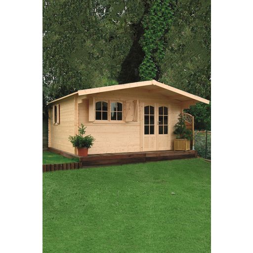 L'abri de jardin Chamonix ressemble à un véritable chalet de montagne. Il est très esthétique avec les volets aux fenêtres. Vous pouvez en faire une dépendance à moindre coût ! L'abri est constitué d'une couverture en shingles et offre une réelle surface d'utilisation pouvant pièce supplémentaire dans votre jardin. Les fenêtres et la porte en double vitrage rendent cet abri lumineux et bien isolé. Le bois provient d'Europe du Nord et a une épaisseur de 40mm. L'abri est équipé d'un débord de toiture d'environ 10cm.