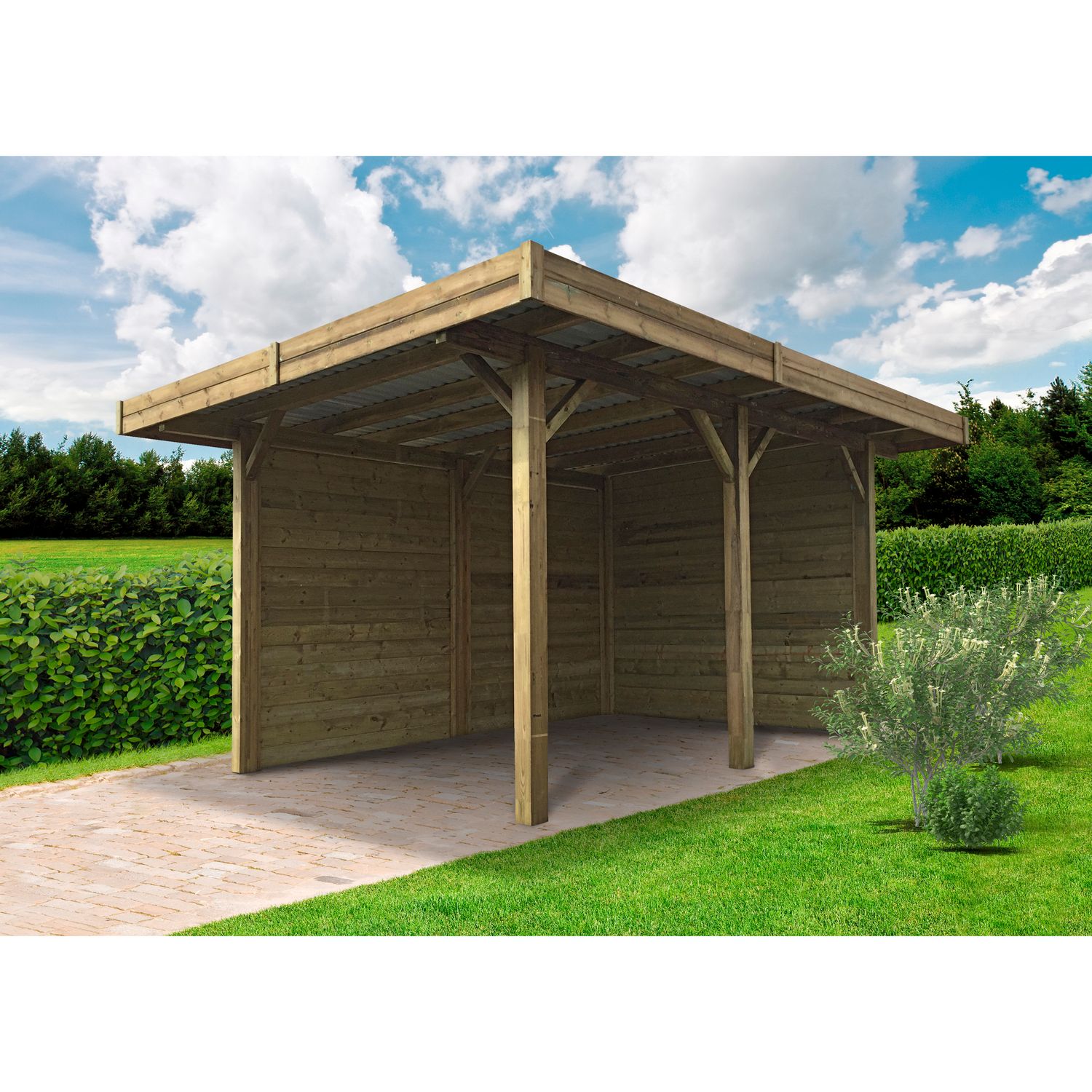 Carport toit plat avec parois - Bois traité en autoclave - 9,72 m² - ARUNDEL