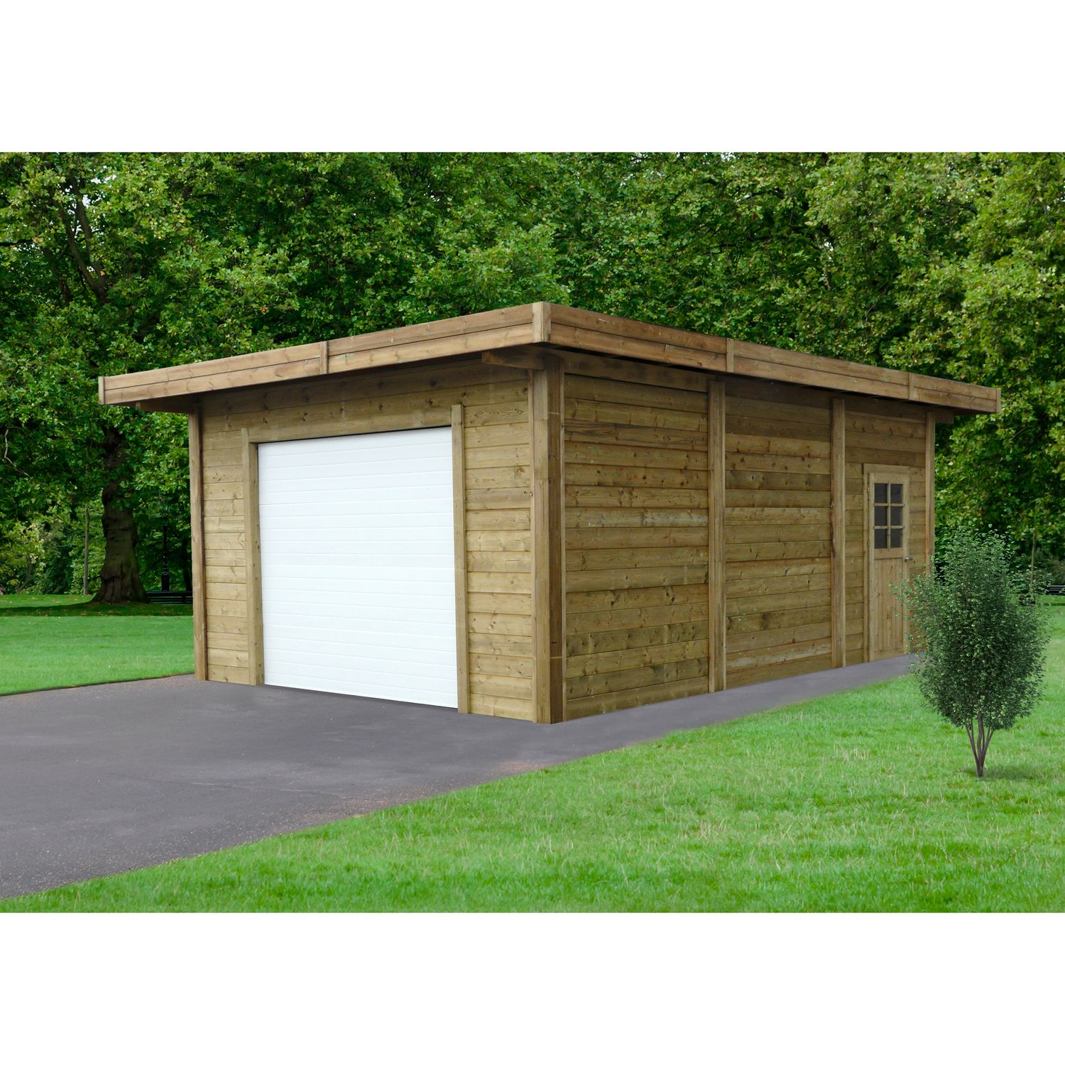 Garage - Bois traité autoclave - Toit plat - 22,20 m² - MOKAI