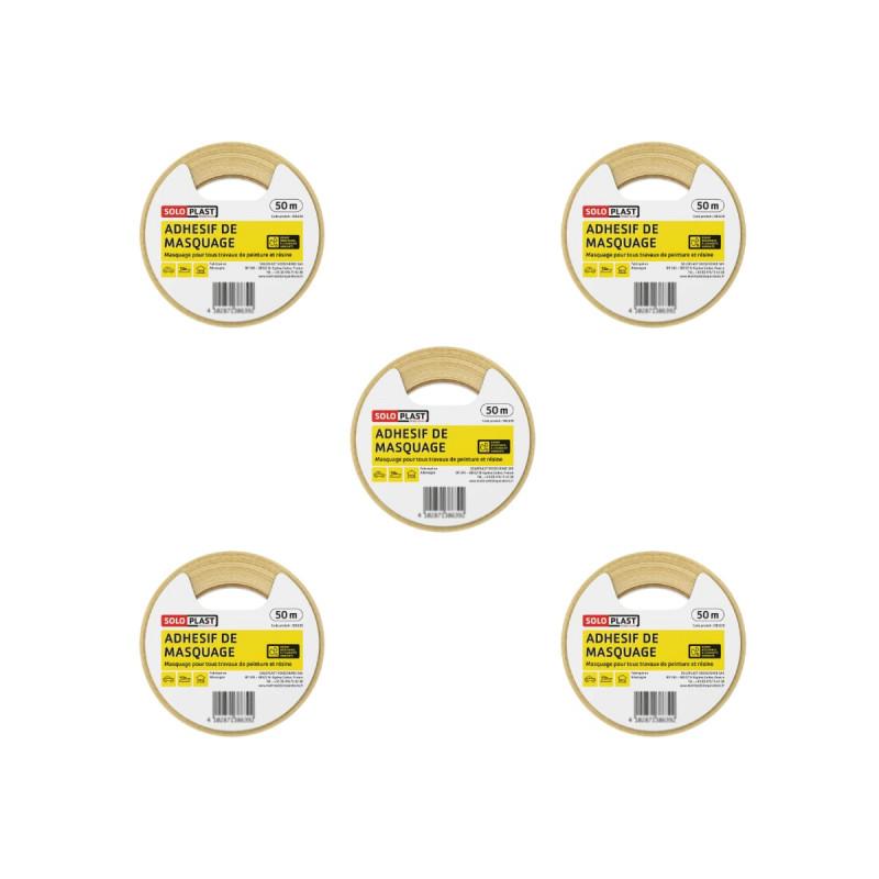 Un lot de 5 adhésifs de masquage Soloplast 25mm x 50m