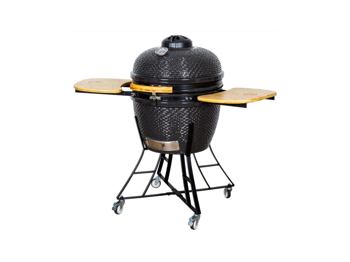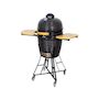 Il est équipé d'une cuve en céramique résistante d'un diamètre de 61 cm, offrant une excellente répartition de la chaleur pour une cuisson homogène. Il dispose de deux grilles en inox, d'un thermomètre intégré et d'un système d'aération précis, permettant un contrôle optimal de la température pour des cuissons parfaites. Son chariot robuste est doté de tablettes latérales rabattables en bambou, offrant ainsi un espace de travail pratique et un gain de place. Avec ses multiples modes de cuisson – directe, indirecte, plancha et fumage – ce barbecue est idéal pour régaler jusqu'à 12 convives.