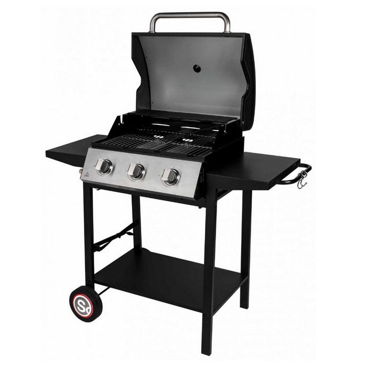 Barbecue gaz sur pied 3 feux 10.500w noir - 335541