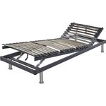 Sommier de relaxation à mécanisme manuel, permettant de relever la tête et les pieds indépendamment à l'aide de poignées. Positions réglables par crémaillères. Zone lombaire, 4 double lattes avec régulateurs de confort indépendants, doubles suspensions ergodynamiques en élastomère. Existe en taille 2X90X190 cm, 140X190 cm et 2X80X190 cm