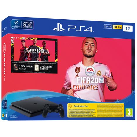 PS4 Slim 1 To Noir + Jeu Fifa 20 + Voucher PS Plus