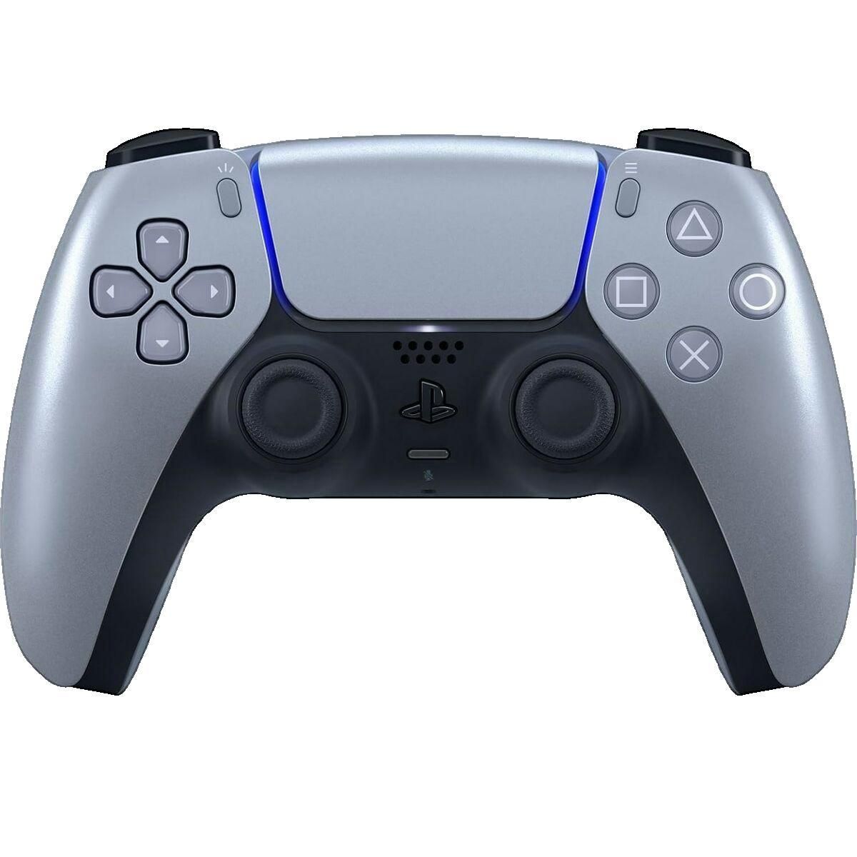Découvrez la manette sans fil DualSense de Sony PlayStation 5 en couleur argent. Cette manette ergonomique est équipée de gâchettes adaptatives à résistance dynamique et d'effets tactiles réalistes pour une immersion totale. Elle possède un microphone intégré pour le chat vocal, une connectivité Blu