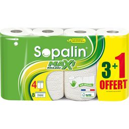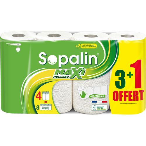 Essuie-Tout Sopalin Sur Mesure blanc 3+1 rouleaux Sopalin® Sur mesure Blanc, l’essuie-tout blanc en format maxi rouleau, plus haut et 2 fois plus long qu’un rouleau classique, vous le changez moins souvent. Grâce à ses feuilles adaptées à la taille de la main il est plus pratique et vous permet de gaspiller moins.