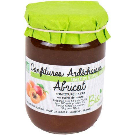 abricots (France) 55%, sucre de canne, gélifiant(pectine de fruits), acidifiant(jus de citron) produits issus de l'agriculture biologique