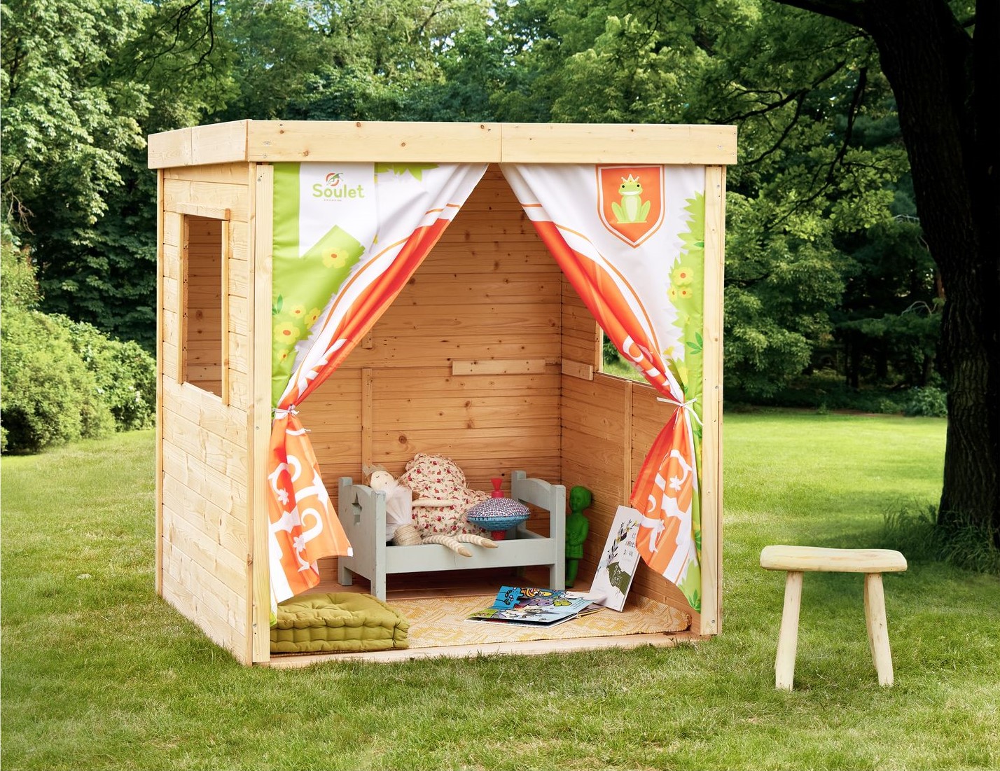 Cette maisonnette en bois et tissu pour enfant Princesse est composé de bois et de tissu ! Les enfants pourront s'amuser à l'intérieur et vivre de fabuleuses aventures dans un coin douillet.