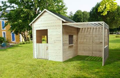 Maisonnette en panneaux de bois brut à peindre, toiture en OSB + feutre bitumeux, tonnelle attenante incluse. vos enfants pourront avoir leur coin et aussi entre amis. Pleins de moments de joie, de rire et de bonheur sont au programme.