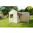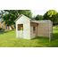 La maisonnette Mimosa est équipée d’un plancher, d’un toit en feutre bitumeux, d’une tonnelle, d’une porte ainsi que de trois fenêtres.