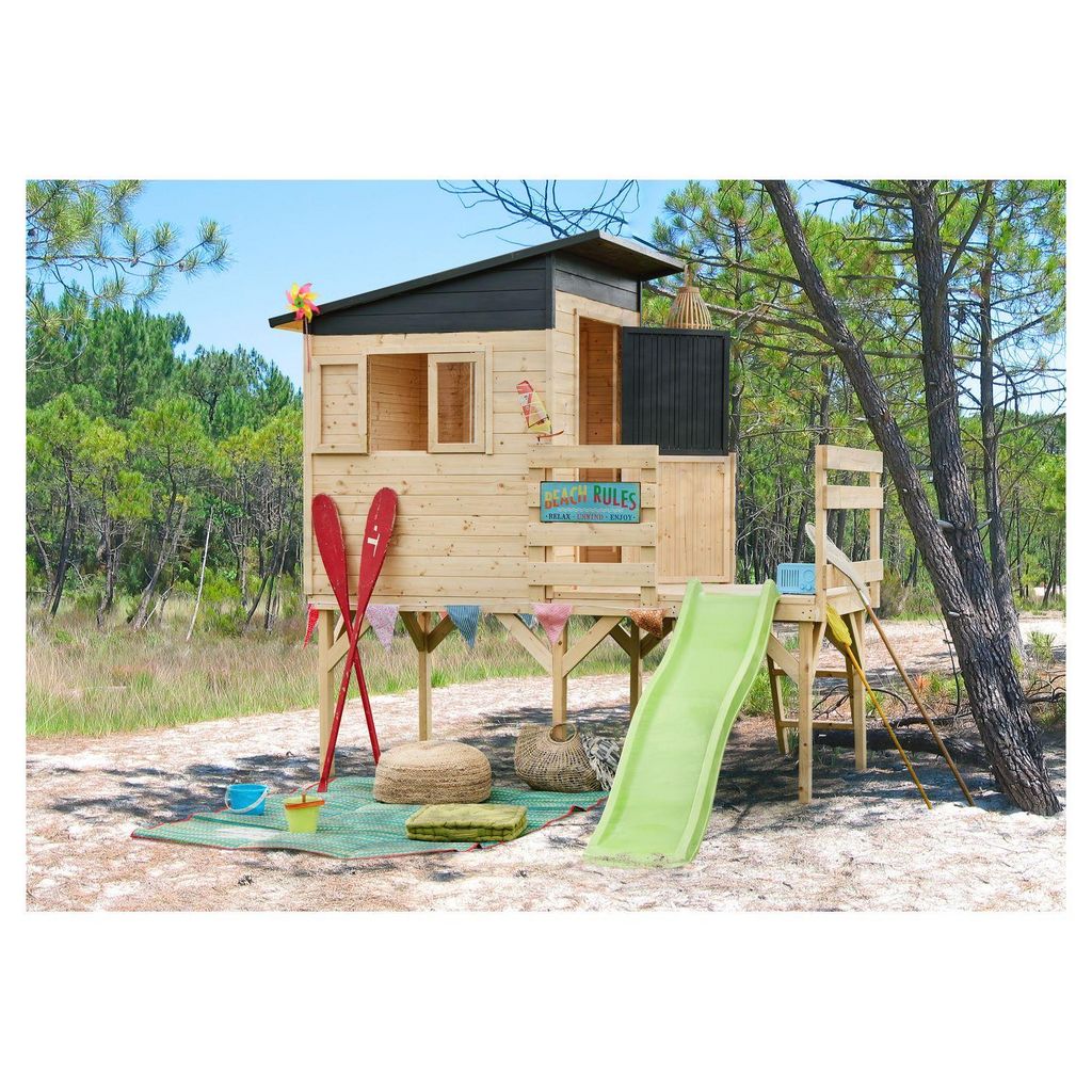 Cabane de jardin pour enfant avec toboggan - Bois - H2.46m - PORTLAND