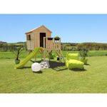 Une demi-porte + 1 volet bois ouvrant + 1 échelle et d'un toboggan de 1,76 m de longueur de glisse.