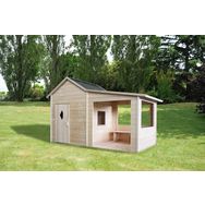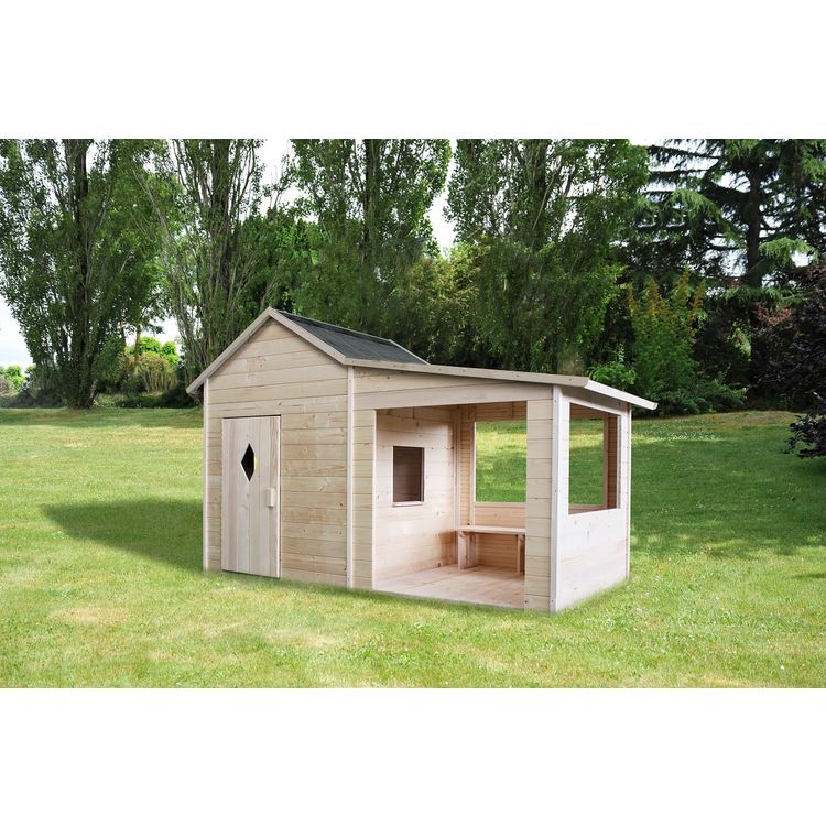 Partez à l'aventure avec la maisonnette AMARYLLIS de Soulet. Elle est équipée d’un plancher, d'un toit, d’un préau avec un banc, d’une porte et de quatre fenêtres. Elle peut accueillir jusqu’à quatre enfants de 3 à 12 ans. En bois brut, vous pouvez la personnaliser en la peig