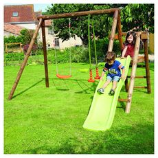 Portique balançoire avec toboggan - Bois - H1,95m - MENTHE