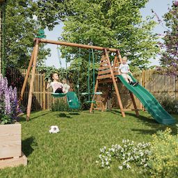 Une station en bois alliant détente, amusement et sécurité ! La station en bois Tulipe est équipée d'un vis-à -vis, d'un siège bébé, d'une balançoire et d'une plateforme avec toboggan d'une hauteur de 120 cm. Les diamètres de la poutre et des poteaux sont respectivement de 10 cm et 8 cm. Faite en bois traité alte IV contre les Champignons, la structure est garantie 5 ans. Cette station est équipée d'un siège bébé pour que les tout-petits puissent aussi en profiter !