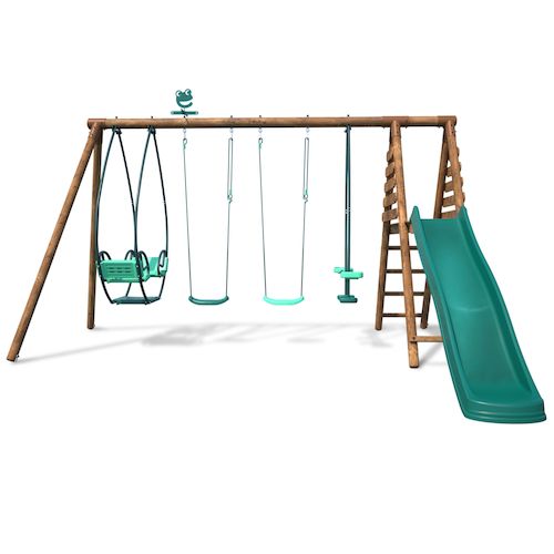 - Agrès n°1 : 1 balançoire en plastique vert, Largeur 39cm x Profondeur 15cm