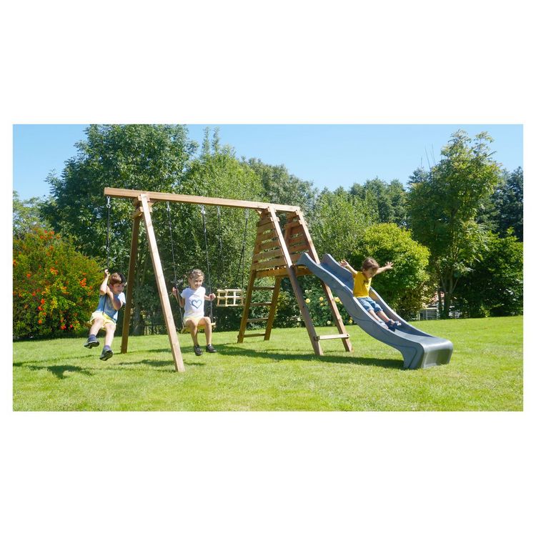 Portique balançoire avec toboggan - Bois - H2,24 m - FLEUR