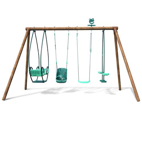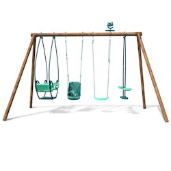 Agrès : 1 balançoire classique, 1 siège bébé, 1 balançoire face à face, 1 balancelle