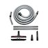 Découvrez notre set d'accessoires pour aspirateurs Starmix, comprenant un tuyau de 5 mètres, un adaptateur en caoutchouc, un coude en acier inoxydable avec vanne d'air, deux rallonges en acier inoxydable de 48 cm, une buse creuse de 21 cm, et une brosse professionnelle de 37 cm avec insert en poils.