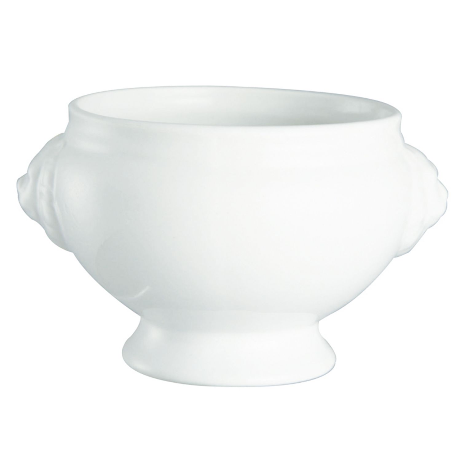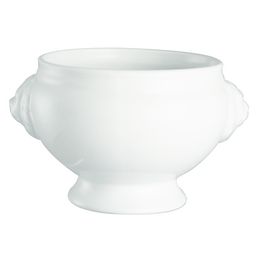 Présentez vos préparations culinaires avec élégance grâce à cette soupière blanche en grès au design épuré et authentique. Ornée de deux têtes de lion sur les côtés, ce célèbre bol traverse le temps. Vos convives vont l'adorer. Facile d'entretien, vous pouvez laver cette soupière au lave vaisselle. Compatible au micro onde. Contenance 0.5 L. .