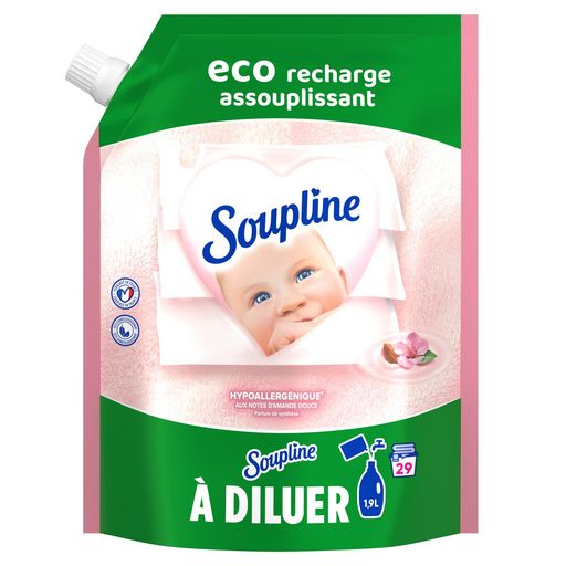 Découvrez les berlingots Soupline Hypoallergénique dans un nouveau format éco-recharge à diluer encore plus pratique et économique. Profitez de 30 Jours de fraîcheur garantie et d'une formule spécialement adaptée aux peaux sensibles !
