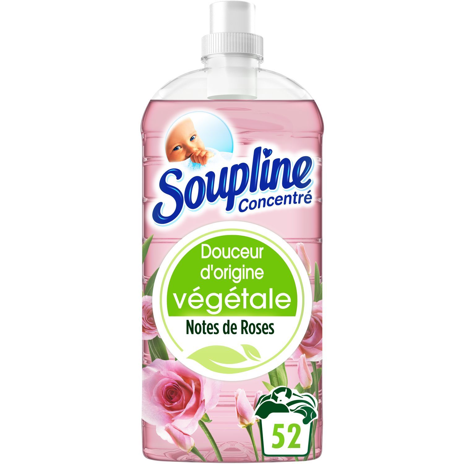 Adoucissant concentré Soupline Douceur végétale Notes de Roses 52 lavages - 1,3L Assouplissant pour linge composé d'une formule testée dermatologiquement qui laisse votre linge doux et l'enveloppe d'un irrésistible parfum avec des extraits naturels. Nous n'utilisons que du plastique recyclé pour cette bouteille, n'oubliez pas de lui donner une deuxième vie en la recyclant.