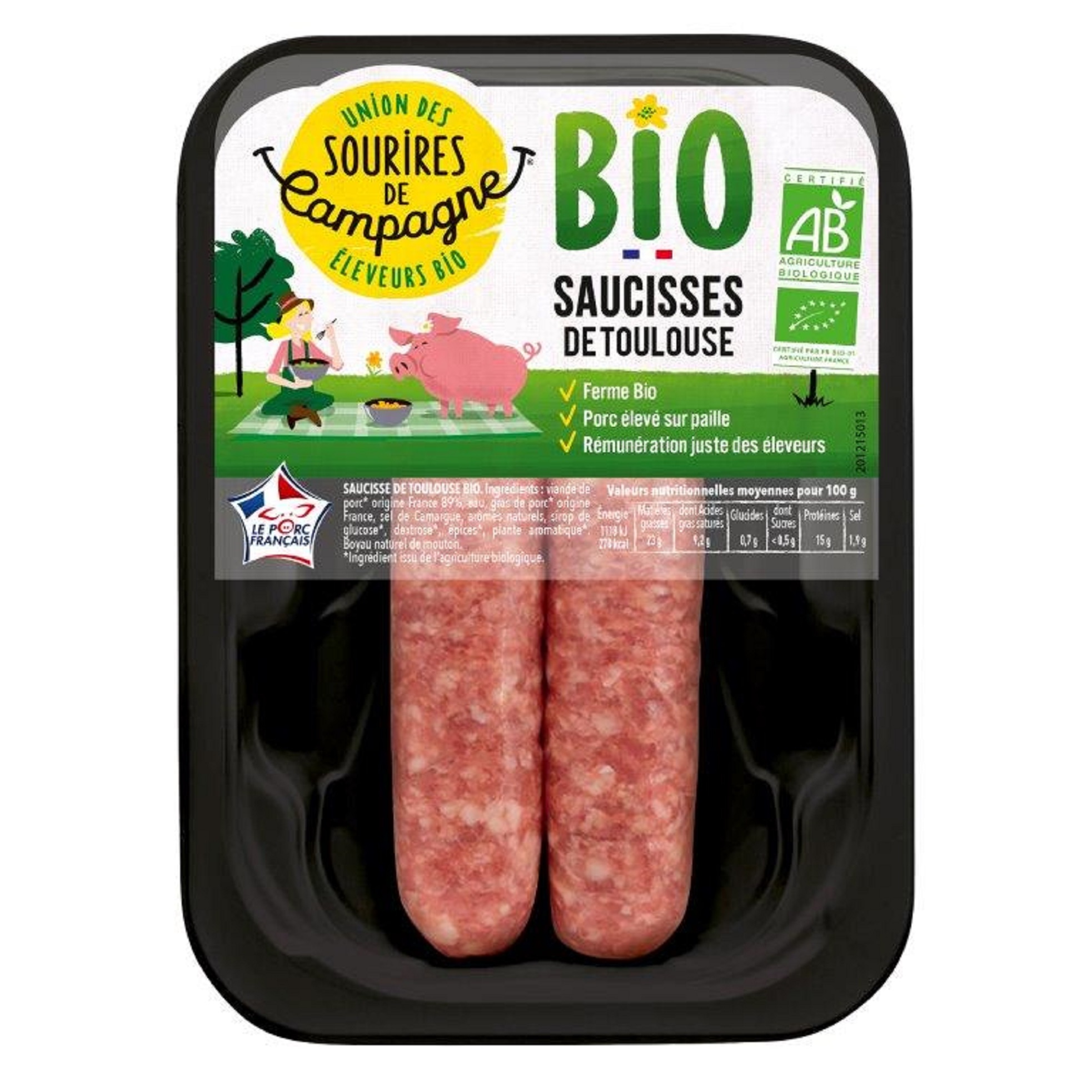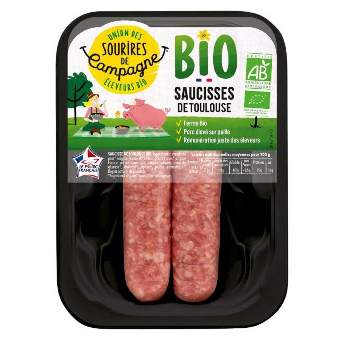 Ingrédients : Ingrédients : viande de porc* origine France 89%, eau, gras de porc* origine France, sel de Camargue, arômes naturels, sirop de glucose*, dextrose*, épices*, plante aromatique*. Boyau naturel de porc. *Ingrédient issu de l'agriculture biologique.