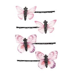 4 barrettes Aaltje papillons rose et violet