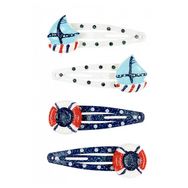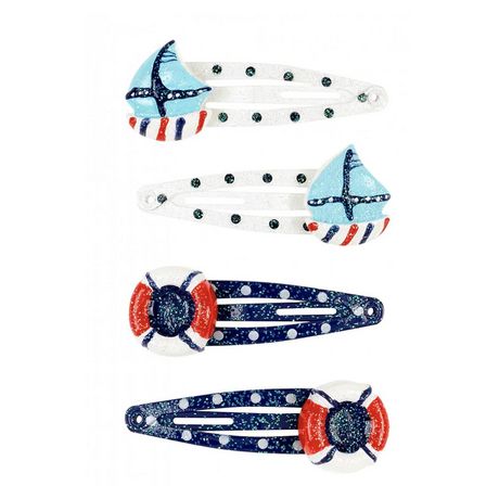 Les barrettes Jette style marin avec bouées et petits bateaux sont des accessoires adorables qui évoquent l'esprit de l'océan et des aventures en mer. Une barrette est décorée d'une petite bouée colorée, symbolisant la sécurité et le flottement dans les vagues. Une autre sur laquelle se trouve un