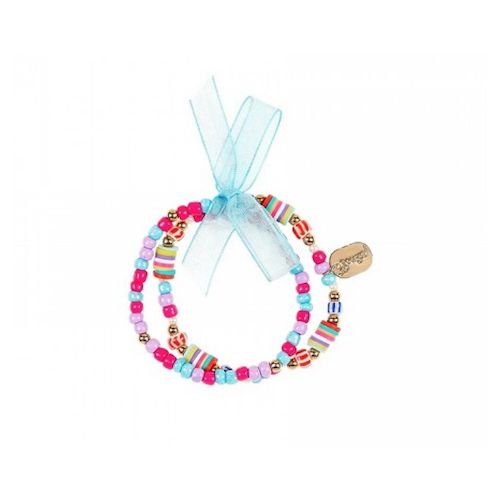 Voici un duo de bracelets qui fait rimer élégance et fantaisie : les bracelets Florina de Souza for Kids ! Livrés par deux, ces bijoux sont faits de perles colorées, de c?urs scintillants et de petites pampilles en forme de fleurs ou d'étoiles. Élastiques, confortables et résistants, ils s'enfilent