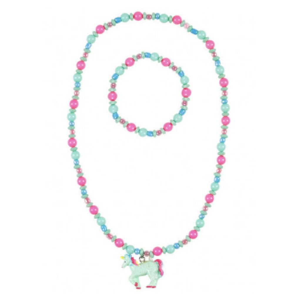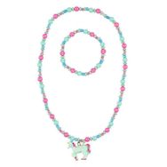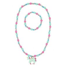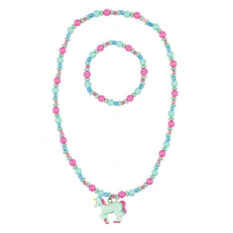 collier et bracelet aike licorne rose-vert menthe