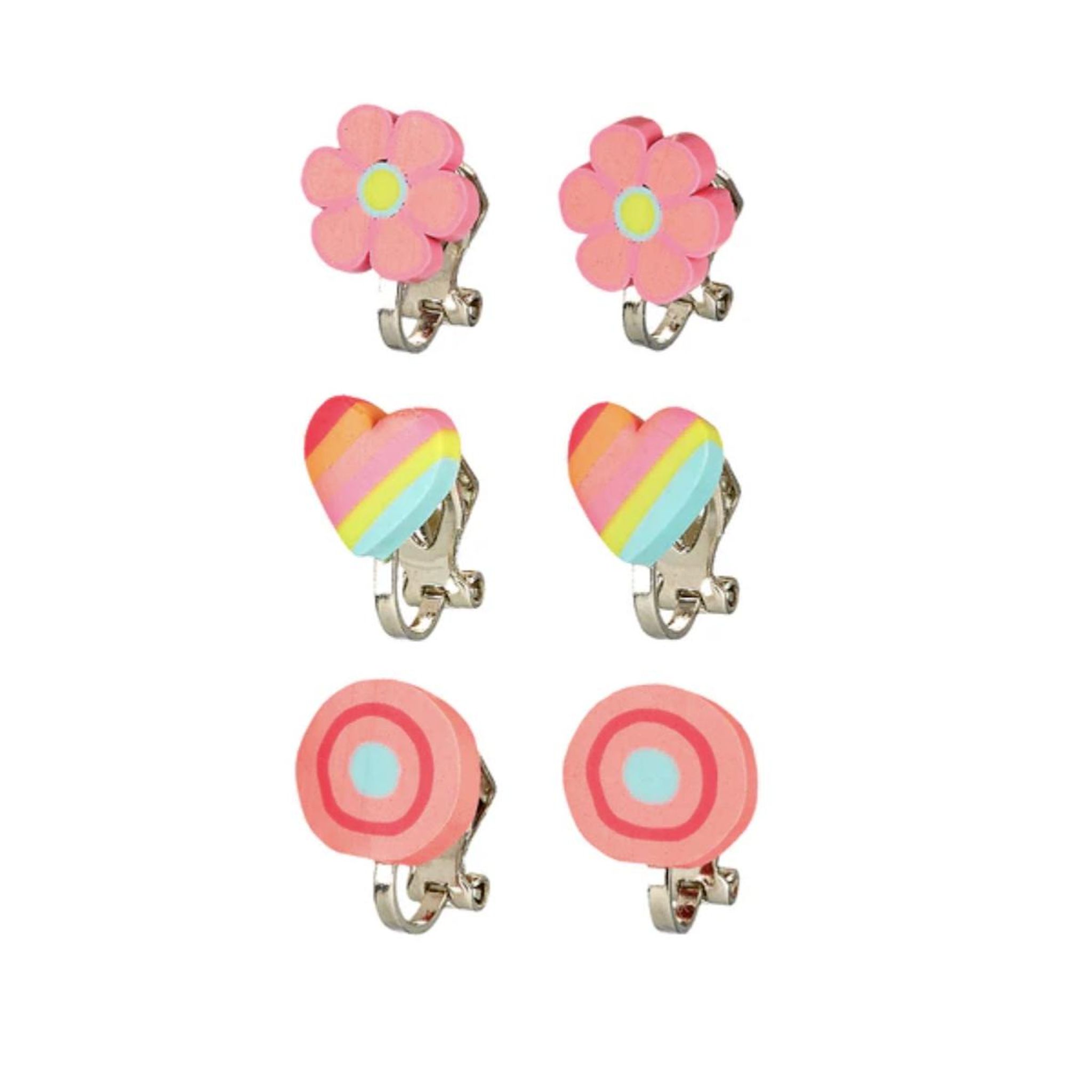 Des pinces d'oreille joyeuses en forme de fleur, un c?ur et un cercle. Tous les clips d'oreilles pour enfants de Souza! (sans nickel).