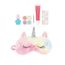 Cet ensemble cadeau Unicorn Sleepover Beauty contient 1 masque de couchage de licorne, 1 vernis bleu, 1 cas de eyesahow avec 4 couleurs, 1 applicateur de fard à paupières, 1 feuille d'autocollants à ongles et un tube de lipgloss rose. Tous les produits cosmétiques sont testés dermatologiquement. Sou