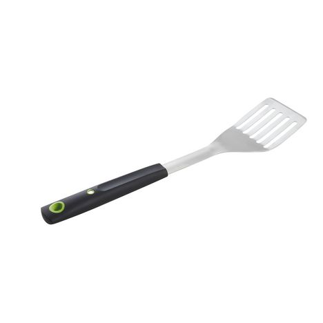 Optez pour cette spatule bi matière inox aimantée pour cuisiner en toute tranquillité. Ergonomique avec sa longueur de 42 cm et sa bi matière aimantée, cette spatule se positionne rapidement sur votre barbecue. Design avec son coloris noir et vert, cette spatule deviendra rapidement un indispensable