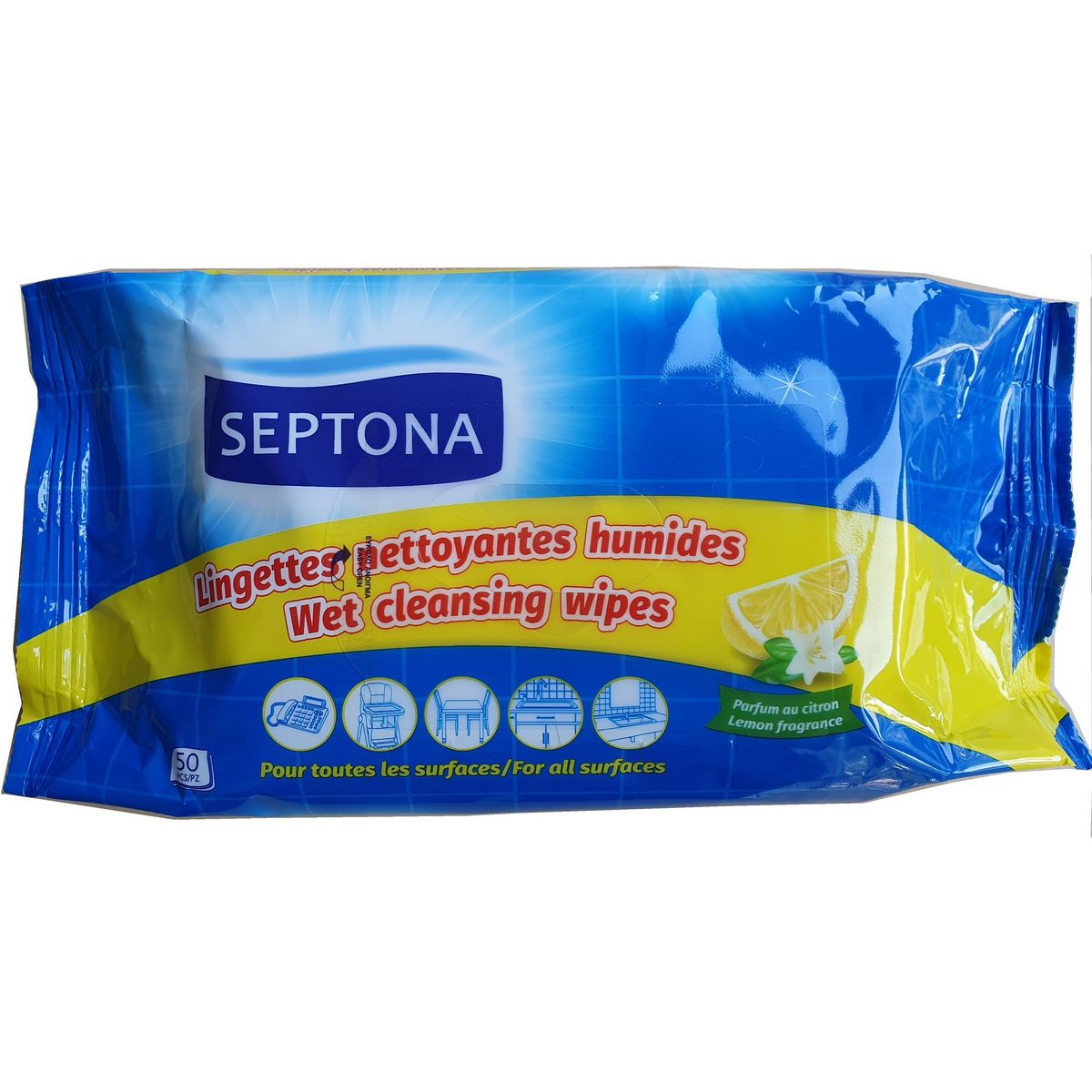 Lingettes nettoyantes humides au parfum de citron, nettoient et parfument touts les surfaces, en un geste !