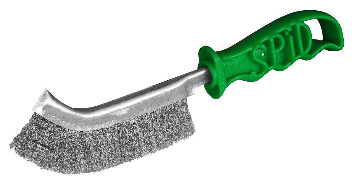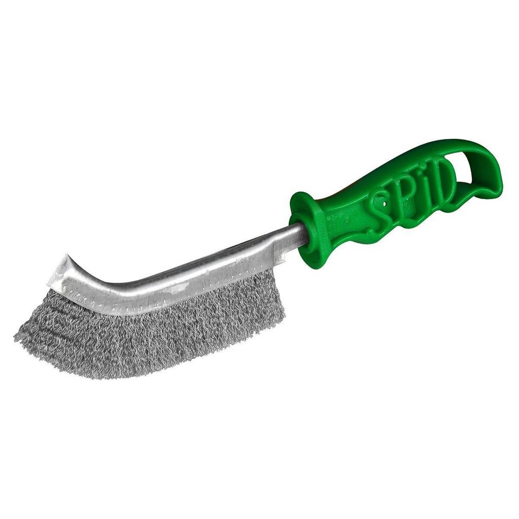Brosse convexe 245 mm fils acier inoxydableBrosses universelles pratiques, maniables, robustes, idéales pour enlever la rouille, la peinture et la saleté de toutes les surfaces, nettoyer une grille, gratter un portail, faire l'entretien des vélos et motos. Faible largeur, courbure particulière et po
