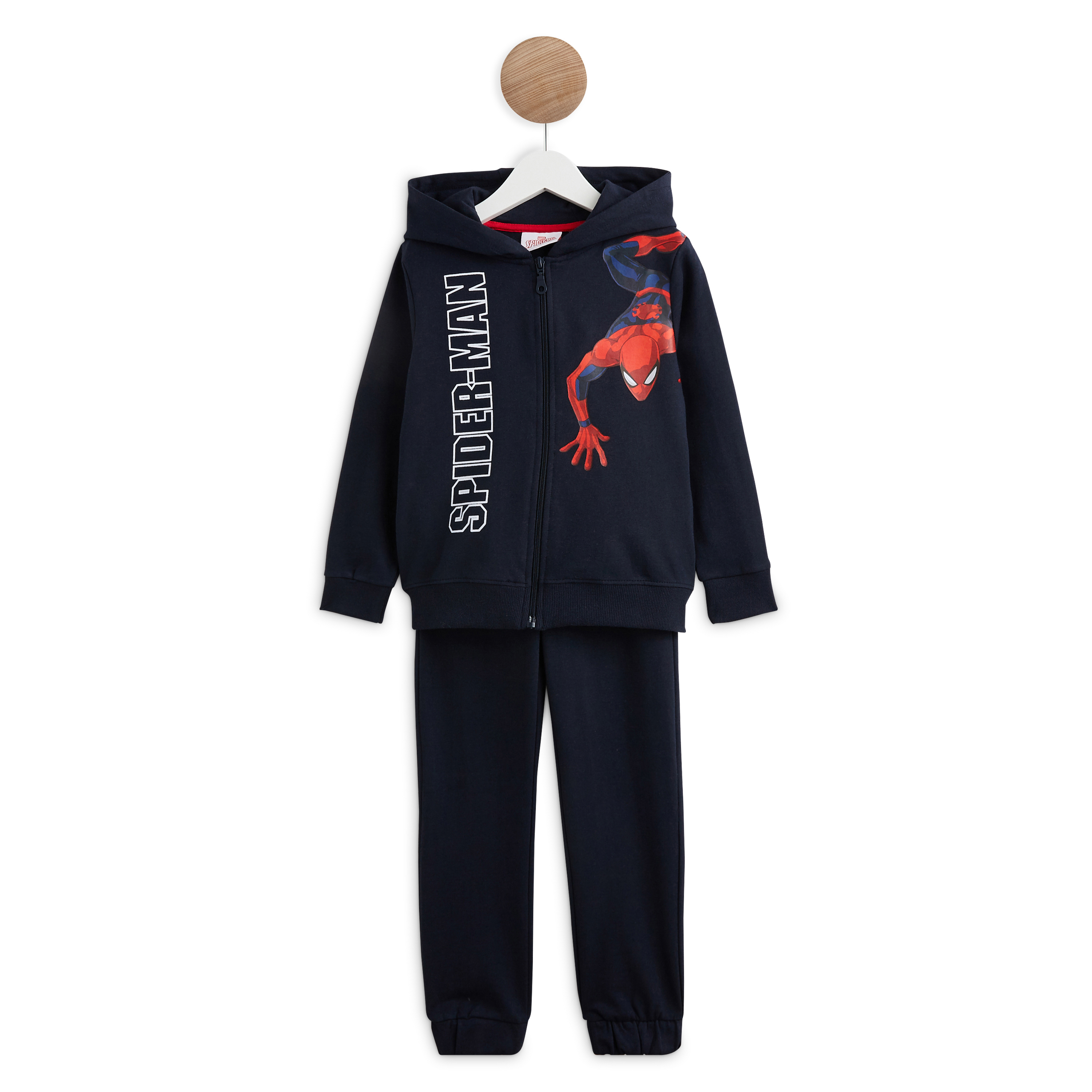En savoir +Doux, souple et confortable à porter en toutes circonstances, cet ensemble de jogging est parfait pour tous les fans du héros Spiderman ! Le sweat possède une fermeture zippée et un imprimé Spiderman sur le devant. Le pantalon a une taille élastiquée et est resserré au bas des jambes.