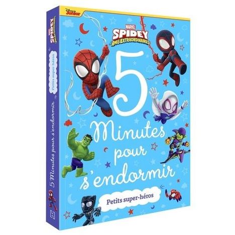 5 minutes de lecture chaque soir avant de s'endormir avec Spidey et ses amis extraordinaires ! Un recueil d'histoires pour le plus grand bonheur des petits et grands ! Découvrez 10 histoires aux textes concis et richement illustrés pour un temps de lecture de 5 minutes par histoire. Un recueil à lire à son enfant pour l'accompagner au pays des rêves ou pour l'encourager au plaisir de la lecture autonome. Dès 4 ans. Contient les histoires : L'union fait la force , La patience de la panthère , Gare au hoquet , Sandman refuse de partager , Destruction de construction , Le Bébé-Transformateur , Mission gluante , Visite chez Iron Man , Le défilé d'Halloween , Un Noël mouvementé.