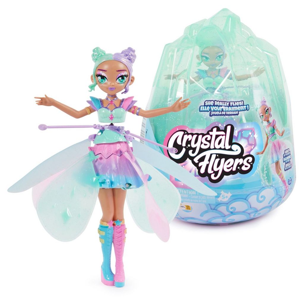 La fée Crystal Flyers de Hatchimals aux magnifiques tons pastel décolle vraiment, vole à l'aide de ses ailes tournantes et se laisse contrôler sans contact avec les mains. - La fée magique se recharge à l'aide du câble USB fourni et ne nécessite pas de piles supplémentaires. - Pour des raisons de sécurité, la fée cesse de voler si ses ailes sont touchées en plein vol