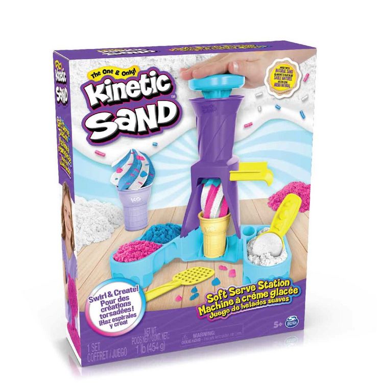 Le seul sable qui ne sèche pas et ne s'émiette pas pour des créations plus solides et tout en couleurs. Elaboré à partir de sable naturel, facile à nettoyer et facile à modeler.Une incroyable machine pour créer et personnaliser des glaces à l'italienne avec 396 grammes de sable (3 couleurs : rose, bleu et blanc), 2 outils et 2 accessoirs inclus. Avec un espace de jeu pour imiter de véritables expériences de créations de crèmes glacées.Mode de jeu ouvert pour des créations sans limites.Boîte fermée.A partir de 5 ans.