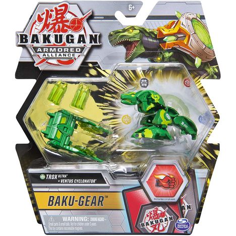 Ce coffret Bakugan Ultra comprend le Bakugan Ultra Trox ainsi qu'un Baku-Gear : un modèle spécial capable de brandir et d'emporter la carte sur laquelle il se déploie. Le Baku-Gear est un équipement qui booste la puissance de ton Bakugan et se déploie quand tu le places dessus.