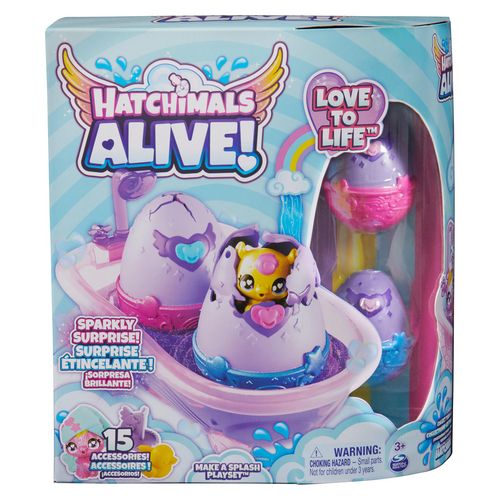 Des figurines Hatchimals à Collectionner avec une nouvelle éclosion magique.Verse de l'eau dans la douche pour faire éclore et découvrir tes figurines Hatchimals. Dans chaque œuf se cache un Hatchimals, une petite créature mignonne. Magique, l'eau mais aussi les figurines changent de couleur au contact de l'eau.Pack comprenant 2 œufs, 2 figurines, 1 douche et 15 accessoires.A partir de 3 ans.
