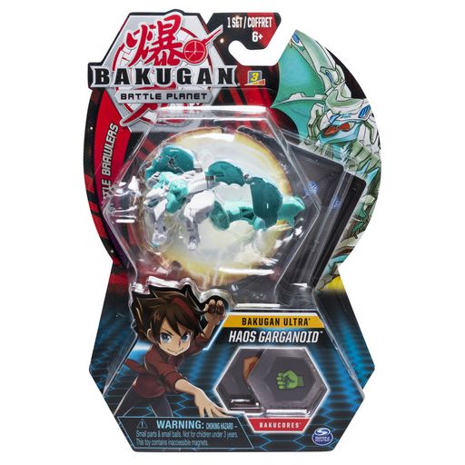 Ce pack comprend 1 figurine à l'effigie de Haos Garganoid : un Bakugan Ultra, 2 cartes hexagonales Bakucore, 1 carte personnage et 1 carte maîtrise.
