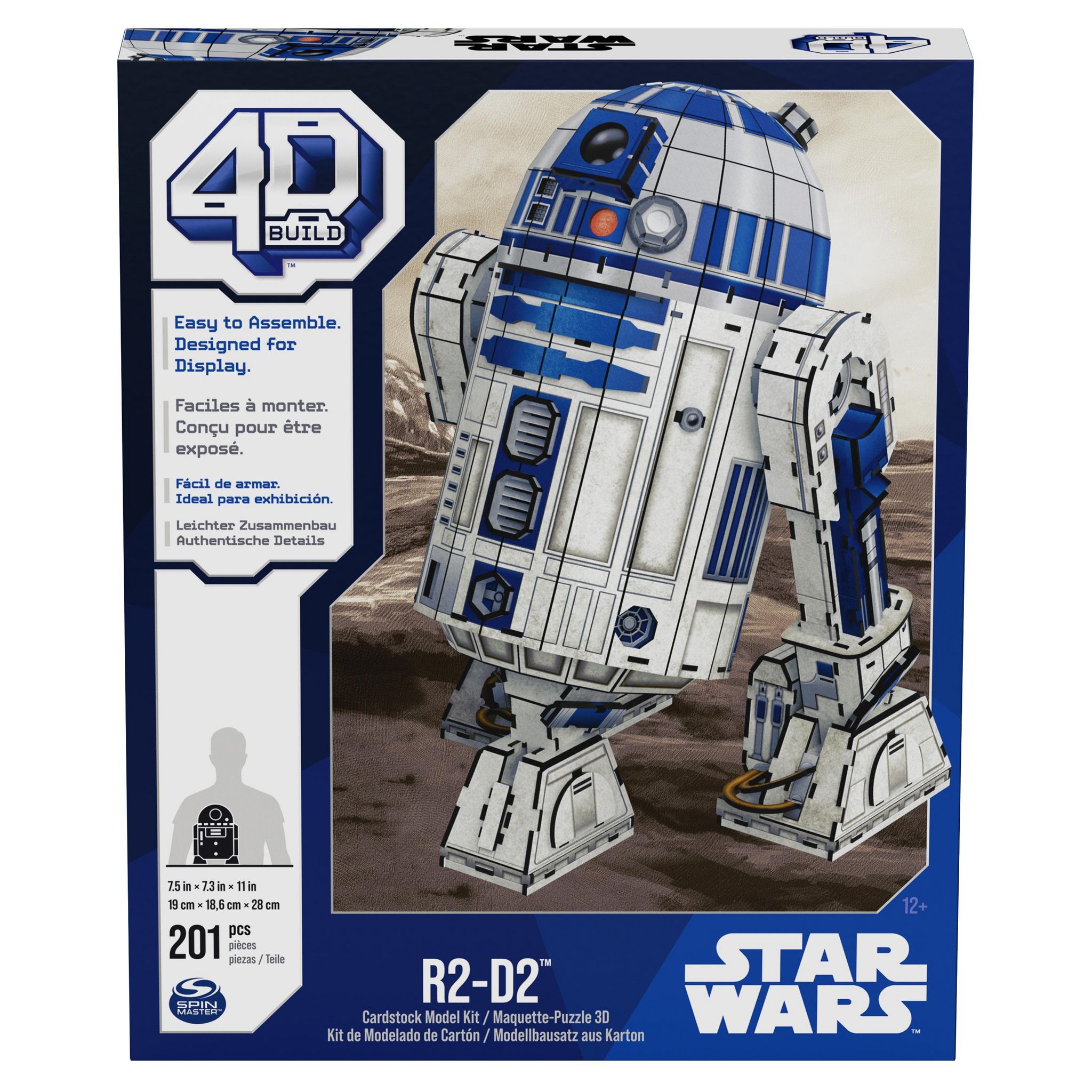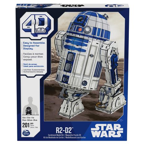 Une réplique ultra-réaliste à construire soi-même !Un système de construction simple avec un haut niveau de détails graphiques permettant de jouer ou d'exposer ses héros préférés.Ce modèle R2-D2 de l'univers Star Wars est composé de 201 pièces, pour une durée de montage d'environ 2 à 3 heures.Dimensions du modèle monté : Hauteur 28 x Longueur 19 x Profondeur 19 cm.6 planches et 1 notice de montage fournies. Colle fournie.Boîte fermée.A partir de 12 ans.