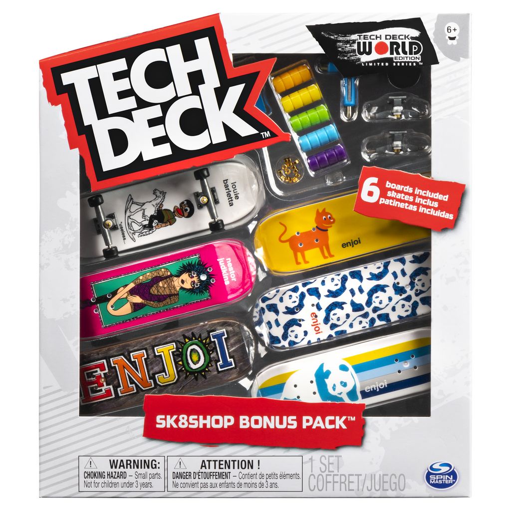 Découvrez le pack Tech Deck Skate Shop Bonus avec un atelier complet pour monter et personnaliser ses finger skates des meilleures marques comme un pro ! Contient 6 planches, et les roues, vis, écrous, trucks, outil, stickers nécessaires. Dès 6 ans.