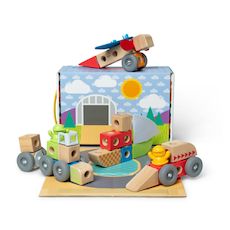 Avec Blockables, découvrez un mode de construction libre et facile qui favorise le développement des enfants. Un coffret sur le thème des véhicules pour construire à 360° en jeu libre ou accompagné. Grâce aux 54 pièces fournies, l'enfant peut réaliser ses propres créations ou suivre le guide illustré avec l'aide de ses parents. Les différents matériaux (bois, plastique, feutrine) l'aident à développer son toucher. Ce coffret de jeu contient : 18 blocs en bois massif (certifié FSC), 17 connecteurs, 2 personnages en figurines et des accessoires dont certaine en feutrine. Compatibles avec toutes les pièces, blocs et éléments de jeu de la gammes Blockables. La boîte de rangement fait office de plateau de jeu. Boîte fermée avec anse. A partir de 2 ans.
