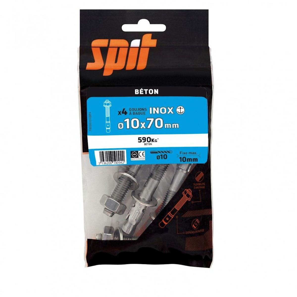 - Composition du kit : 4 goujons INOX Fix Z SPIT 10x70mm