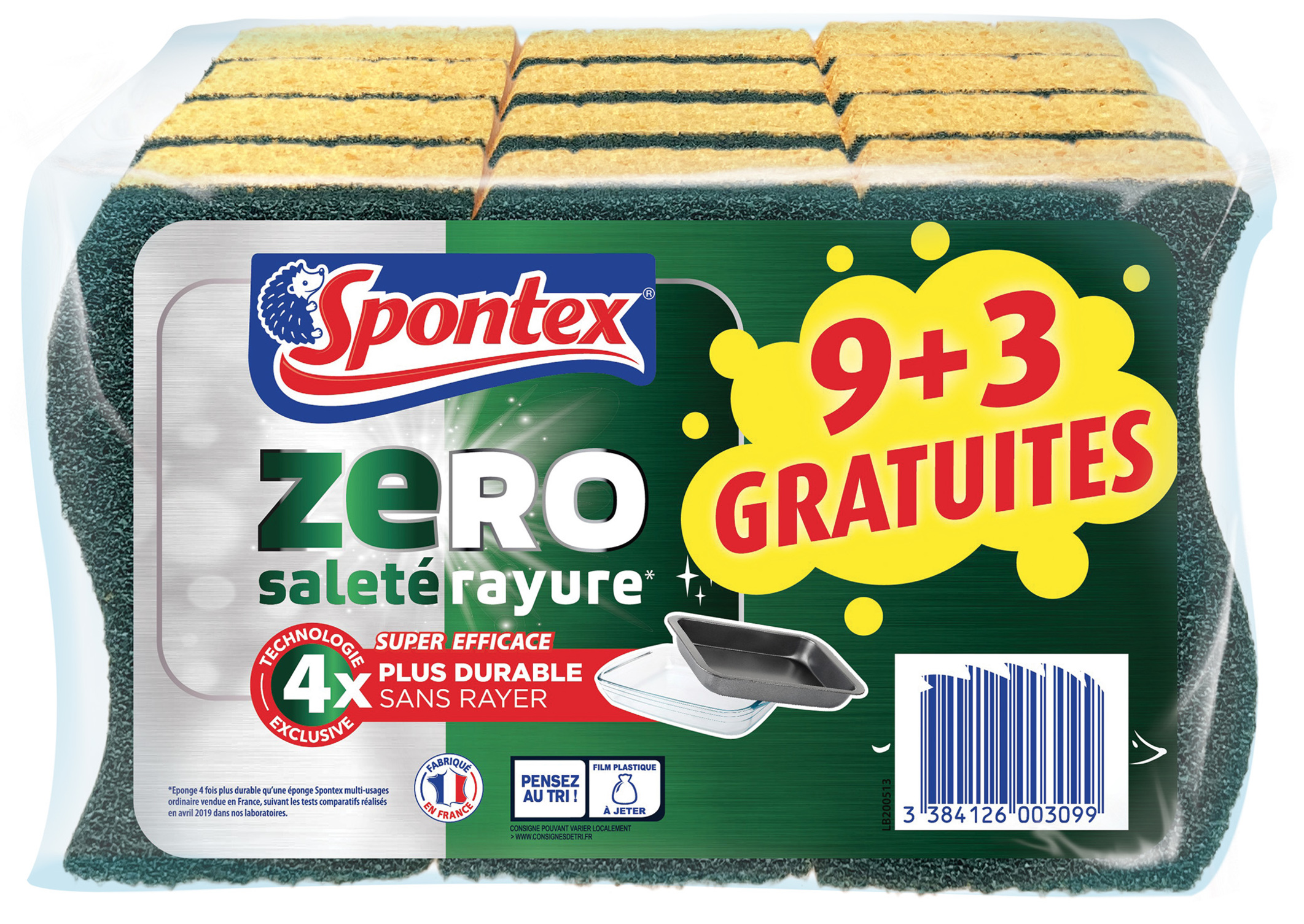 Zéro Surfaces EncrasséesNouvelle technologie exclusive regroupe deux bénéfices: la super efficacité et la non-rayance. Forme en S est ergonomique et différenciante des éponges traditionnelles sur le marché.